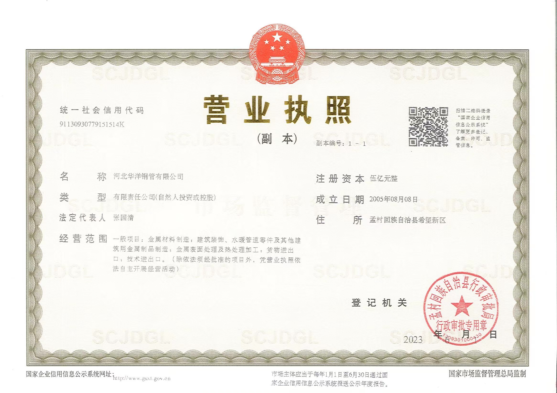河北華洋鋼管有限公司公司創(chuàng)建于2005年,注冊(cè)資金5億元,公司占地面積1000余畝,固定資產(chǎn)12億元,年銷售收入近100億元,現(xiàn)有員工600余人?!叭A洋牌"高頻直焊鋼管被評(píng)為“河北省名牌產(chǎn)品”,年生產(chǎn)能力可達(dá)260萬噸,2024年河北華洋鋼管有限公司榮獲河北省百強(qiáng)民營企業(yè)(69位),河北省百強(qiáng)制造業(yè)(57位)榮譽(yù)稱號(hào)。